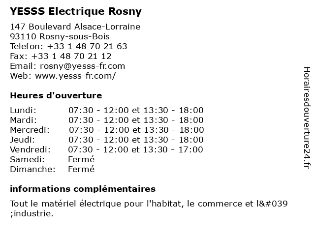 | Lundi | 07:30-12:00 et 13:30-18:00 |