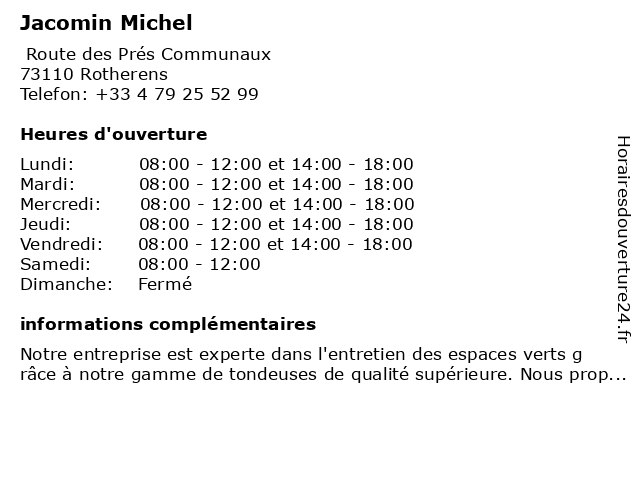 | Mercredi | 08:00-12:00 et 14:00-18:00 |