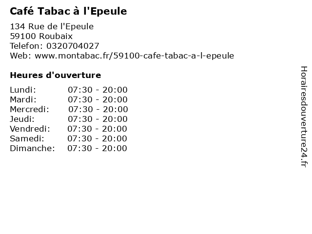 | Samedi | 07:30-20:00 |