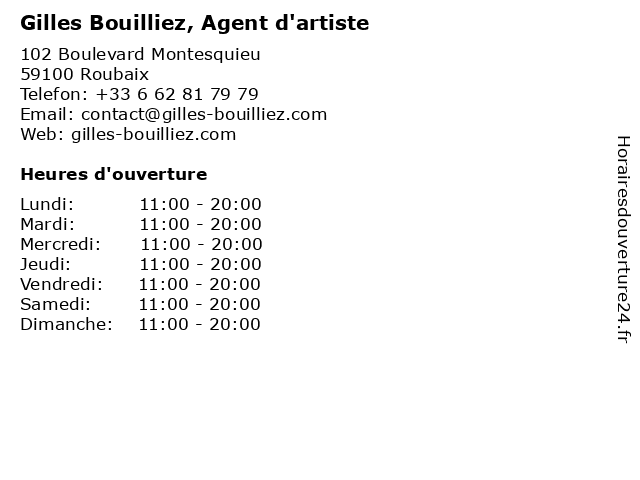 | Mercredi | 11:00-20:00 |