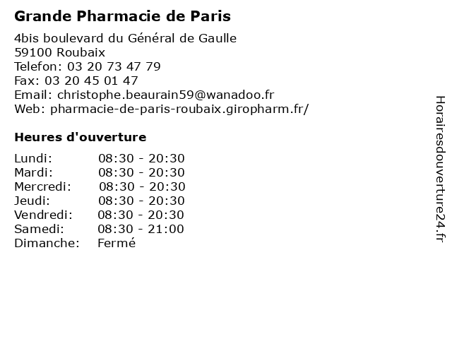 | Mercredi | 08:30-20:30 |