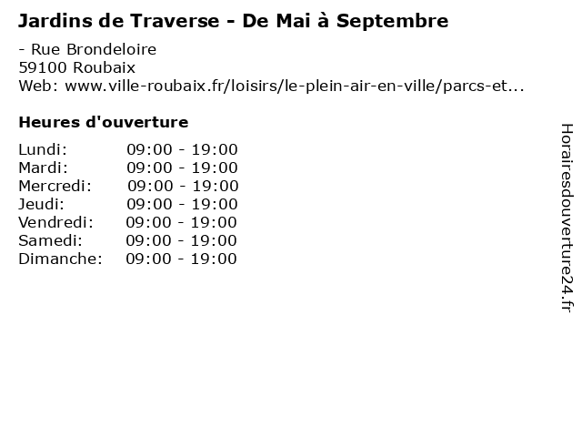 | Dimanche | 09:00-19:00 |