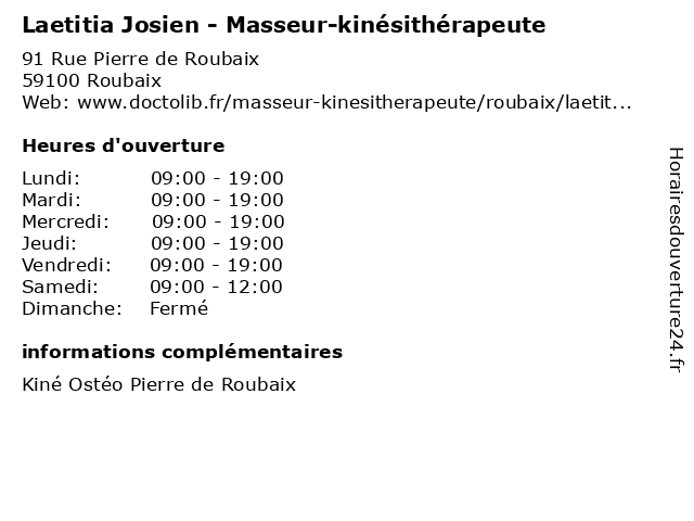 | Lundi | 09:00-19:00 |