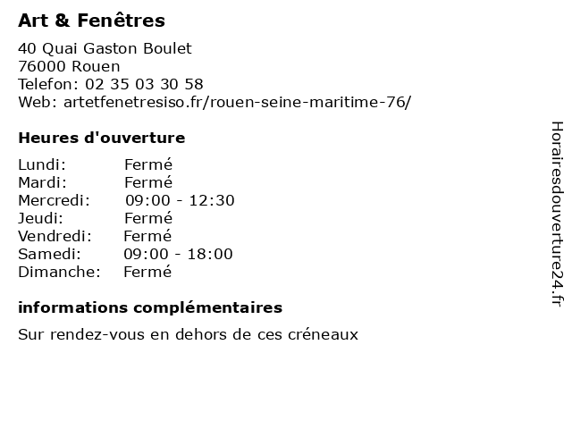 1 Fenêtres Lorenove (Distance: 0,36 km) 68 Quai du Havre, 76000 Rouen fenêtres, installateur, lorenove, pvc 2 Hangar 107 - Centre d'Art (Distance: 0,51 km) 107 allée François Mitterrand, 76100 Rouen 107, centre, d'art, exposition, galerie d'art, hangar, musée, peinture 5 Galerie Art'Antik (Distance: 0,91 km) 30 Rue Aux Ours, 76000 Rouen art'antik, artistes, expositions, galerie, peintures, sculptures, tableaux 6 L'Art de la Beauté (Distance: 1,18 km) 39 Rue des Bonnetiers, 76000 Rouen beaute, beauté, de, institut, l'art, la, produits, sante |