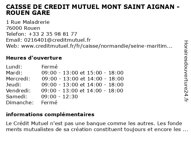 Termes de recherche pour CAISSE DE CREDIT MUTUEL MONT SAINT AIGNAN - ROUEN GARE:de, saint, mont, rouen, gare, crédit, mutuel, caisse, aignan |