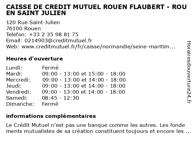 Termes de recherche pour CAISSE DE CREDIT MUTUEL ROUEN FLAUBERT - ROUEN SAINT JULIEN:de, saint, rouen, julien, crédit, mutuel, caisse, flaubert |