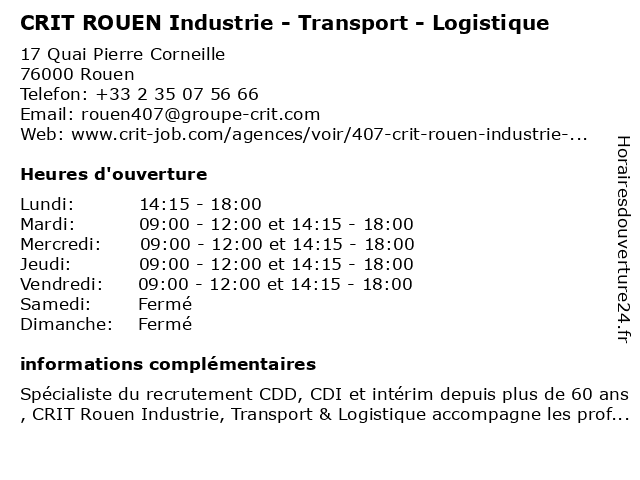 Termes de recherche pour CRIT ROUEN Industrie - Transport - Logistique:rouen, transport, industrie, logistique, crit |