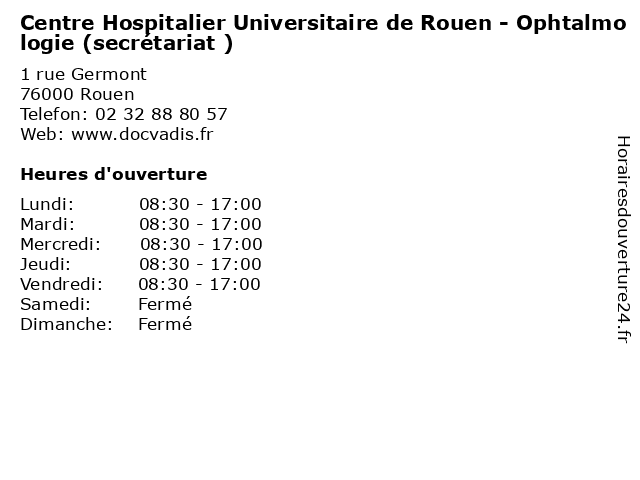 Termes de recherche pour Centre Hospitalier Universitaire de Rouen - Ophtalmologie (secrétariat ):de, rouen, centre, santé, secretariat, hospitalier, universitaire, docteur, consultation, ophtalmologie |