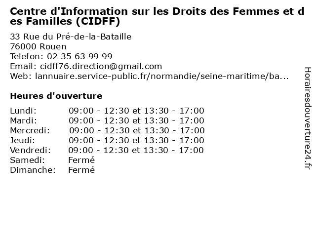 | Mardi | 09:00-12:30 et 13:30-17:00 |