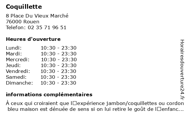 | Dimanche | 10:30-23:30 |