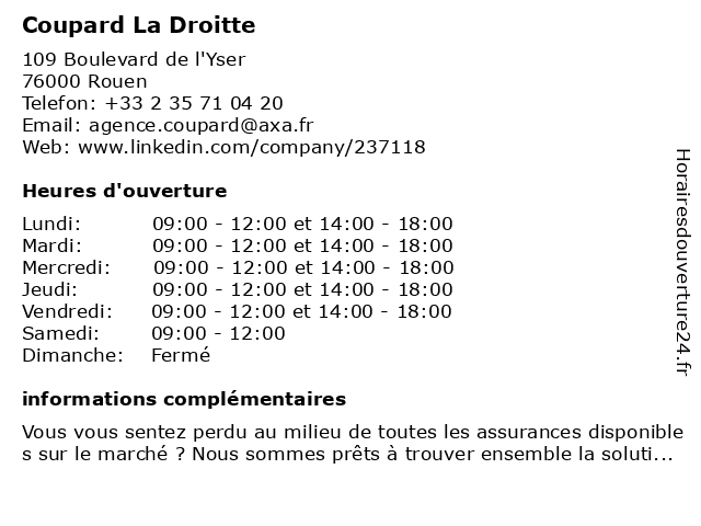 | Mardi | 09:00-12:00 et 14:00-18:00 |