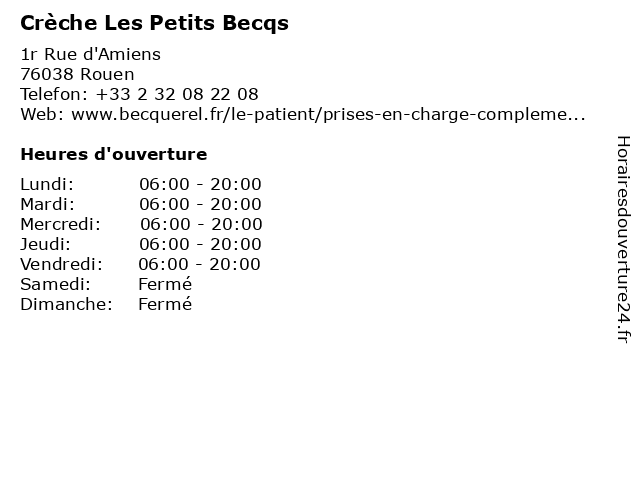 | Lundi | 06:00-20:00 |