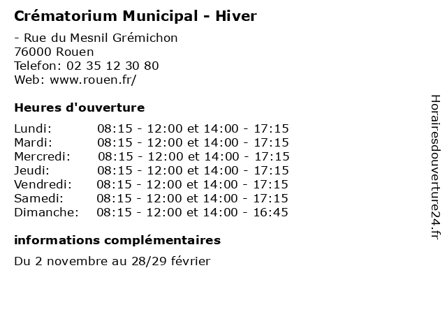 | Dimanche | 08:15-12:00 et 14:00-16:45 |
