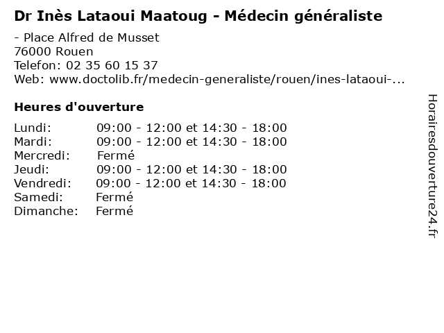 | Lundi | 09:00-12:00 et 14:30-18:00 |