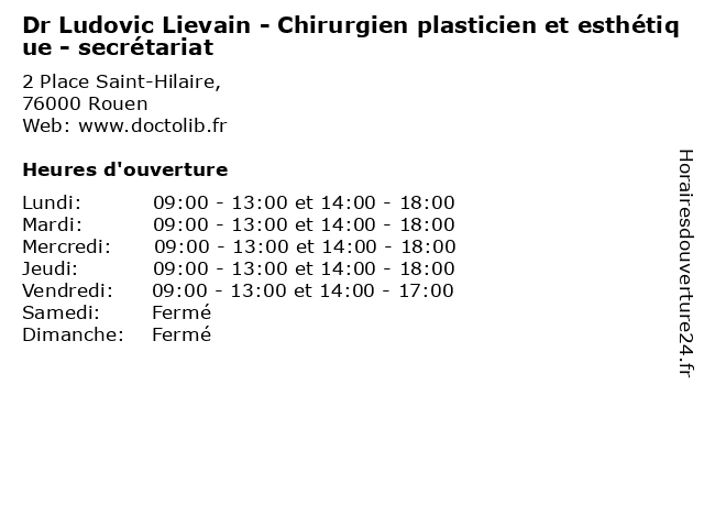 | Lundi | 09:00-13:00 et 14:00-18:00 |