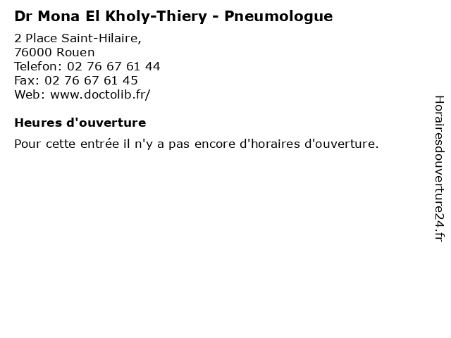 | Appeler Dr Mona El Kholy-Thiery - Pneumologue | |