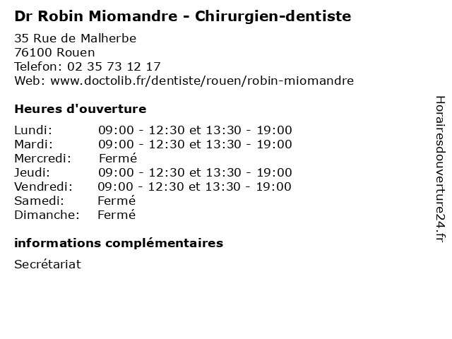 | Lundi | 09:00-12:30 et 13:30-19:00 |