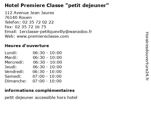 1 Hotel Premiere Classe "petit dejeuner" (Distance: 2,78 km) 11 Avenue Des Canadiens, 76800 St-Etienne-du-Rouvray "petit, classe, dejeuner", hotel, petit dejeuner, premiere, restaurant 2 Hotel Premiere Classe (Distance: 0,00 km) 112 Avenue Jean Jaures, 76140 Rouen bar, chambres, classe, hotel, premiere, restaurant, service 3 Hotel de Bourgtheroulde, Autograph Collection (Distance: 2,54 km) 15 Pl. de la Pucelle, 76000 Rouen autograph, bar, bourgtheroulde, chambres, collection, de, hotel, restaurant 4 B&B Hotel Rouen Parc des Expos Zénith (Distance: 2,55 km) . Avenue des Canadiens, 76120 Le Grand-Quevilly b&b, bar, cafe, des, expos, hotel, parc, restaurant, rouen, service, zénith 5 Hotel Stars (Distance: 2,67 km) 1 Avenue des Canadiens, 76800 St Etienne du Rouvray bar, chambres, hotel, restaurant, stars 6 Hotel Premiere Classe (Distance: 2,67 km) . Avenue Des Canadiens, 76800 St Etienne Du Rouvray bar, chambres, classe, hotel, premiere, restaurant, service |