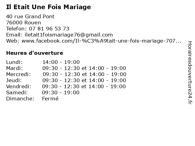 | Mardi | 09:30-12:30 et 14:00-19:00 |