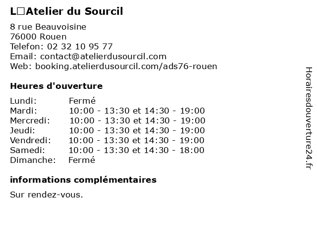 Mardi | 10:00-13:30 et 14:30-19:00 |