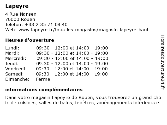 | Samedi | 09:30-12:00 et 14:00-19:00 |