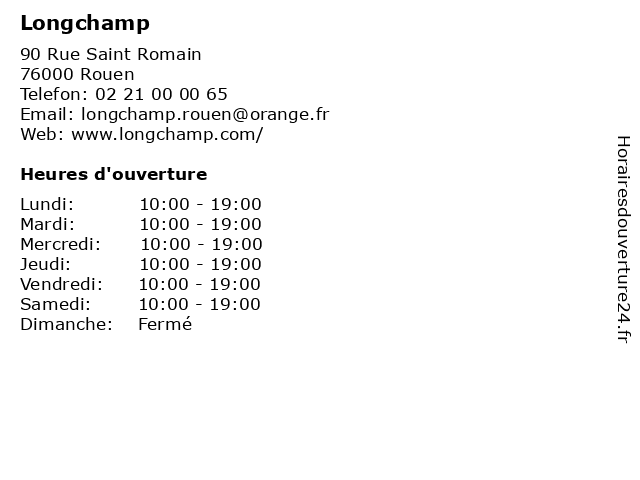 1 Longchamp (Distance: 0,07 km) 4 Rue du Gros Horloge, 76000 Rouen boutique, les femmes, longchamp, mode, robe, sac, shopping 2 Tabac Le Longchamp (Distance: 15,58 km) 55 Rue des Martyrs de la Résistance, 76360 Barentin bar, cigarette, fdj, journaux, le, longchamp, pmu, presse, tabac 3 DEVRED1902 (Distance: 0,19 km) 63 Rue Du Gros Horloge, 76000 Rouen devred1902, fabricant de prêt-à-porter, magasin de chaussures, magasin de smokings, magasin d’accessoires de mode, mode 4 Rénoval - Techni Baie (Distance: 31,05 km) 745 rue de Namsos, 76890 Biville-la-Baignarde baie, fabricant, rénoval, techni, véranda 5 E.Leclerc Brico (Distance: 35,02 km) Route du marechal de lattre de tassigny, 27110 Le Neubourg brico, e.leclerc, fabricant d'abris de jardin, fabricant de garages, fournisseur de bois de chauffage, magasin de fournitures pour piscines, nettoyage de fosses septiques, plantes d?intérieur, système d?arrosage de la pelouse, vente de tondeuses à gazon 6 |