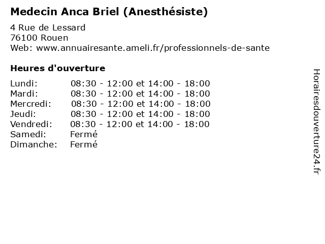 | Lundi | 08:30-12:00 et 14:00-18:00 |