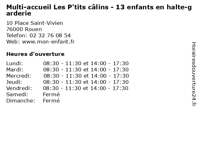| Mercredi | 08:30-11:30 et 14:00-17:30 |