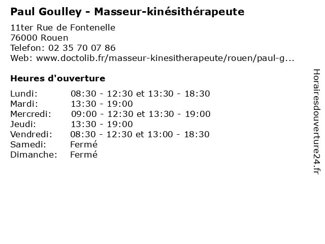 | Mercredi | 09:00-12:30 et 13:30-19:00 |