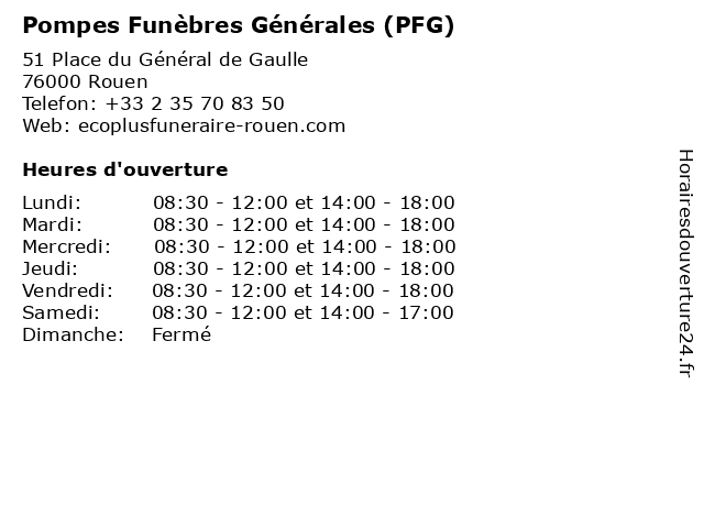1 Pompes Funèbres Générales (PFG) (Distance: 3,24 km) 8 Place de l'Hôtel de ville, 76300 Sotteville-lès-Rouen administration, assoc, associations, aux, bussières, d'information, de, des, dédié, funèbres, greffe, générales, information, local, locale, mairie, mission, personnes, pfg, pompes 2 Pompes funèbres PFG ROUEN - Place du Général de Gaulle (Distance: 0,01 km) 51 Place du Général de Gaulle, 76000 Rouen avis de décès, crémation, de, du, entretien de sépulture, fleurs deuil, formalités après obsèques, funèbres, gaulle, général, inhumation, marbrerie, monument funéraire, pfg, place, pompes, pompes funèbres, prévoyance obsèques, rouen 3 PFG Services Funéraires (Distance: 1,40 km) 18 Avenue Olivier de Serres, 76000 Rouen funeraires, funéraires, marbrerie, pfg, plaque funéraire, pompes funèbres, services 4 PFG Services Funeraires (Distance: 3,20 km) 3256 Route De Neufchatel, 76230 Bois Guillaume funeraires, marbrerie, pfg, plaque funéraire, pompes funèbres, services 5 PFG Services Funéraires (Distance: 3,68 km) 70 Rue des Freses Delattre, 76140 Le-Petit-Quévilly funeraires, funéraires, marbrerie, pfg, plaque funéraire, pompes funèbres, services 6 Pompes funèbres PFG DARNÉTAL (Distance: 3,75 km) 1 Rue de la Table de Pierre, 76160 Darnétal avis de décès, crémation, darnétal, entretien de sépulture, fleurs deuil, formalités après obsèques, funèbres, inhumation, marbrerie, monument funéraire, pfg, pompes, pompes funèbres, prévoyance obsèques |