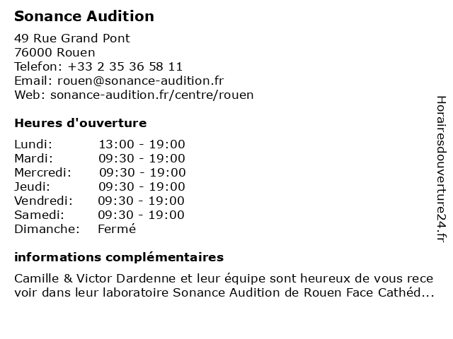 1 Sonance Audition (Distance: 1,90 km) 1 Rue Pierre Corneille, 76300 Sotteville-lès-Rouen audition, sonance 2 Sonance Audition (Distance: 5,53 km) 48 Place Eugène Delacroix, 76120 Le Grand-Quevilly audition, sonance 4 Ecouter Voir - Audition Mutualiste (Distance: 0,26 km) 117 Rue du Général Leclerc, 76000 Rouen audition, ecouter, mutualiste, voir 6 Ecouter Voir - Audition Mutualiste (Distance: 0,90 km) 22 Avenue de Bretagne, 76100 Rouen audition, ecouter, mutualiste, voir |