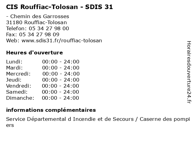 | Samedi | 00:00-24:00 |