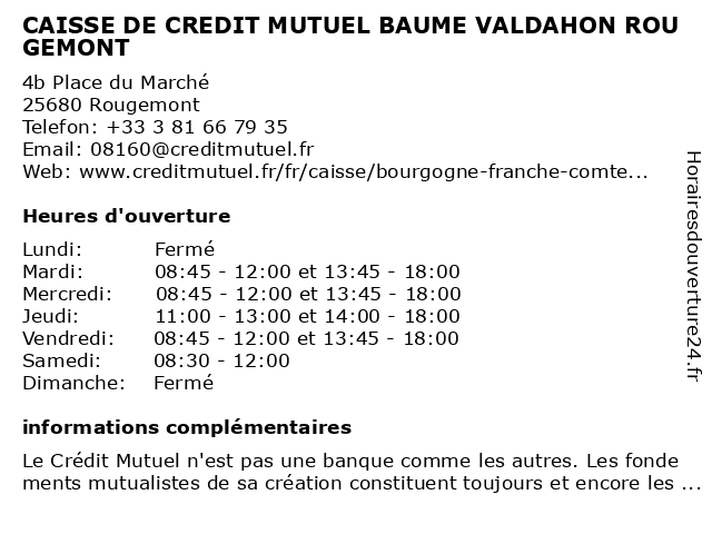Termes de recherche pour CAISSE DE CREDIT MUTUEL BAUME VALDAHON ROUGEMONT:de, valdahon, crédit, mutuel, caisse, rougemont, baume |