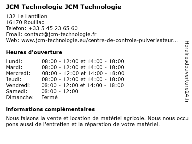 | Dimanche | Fermé |