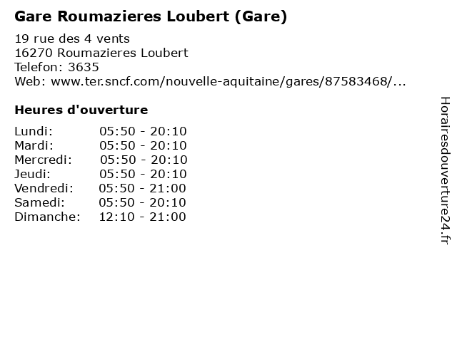 Termes de recherche pour Gare Roumazieres Loubert (Gare):gare, services, station, loubert, roumazières |