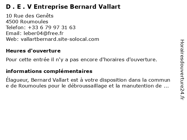| Appeler D . E . V Entreprise Bernard Vallart | |