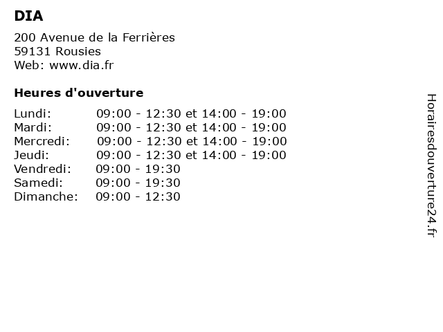 | Mardi | 09:00-12:30 et 14:00-19:00 |