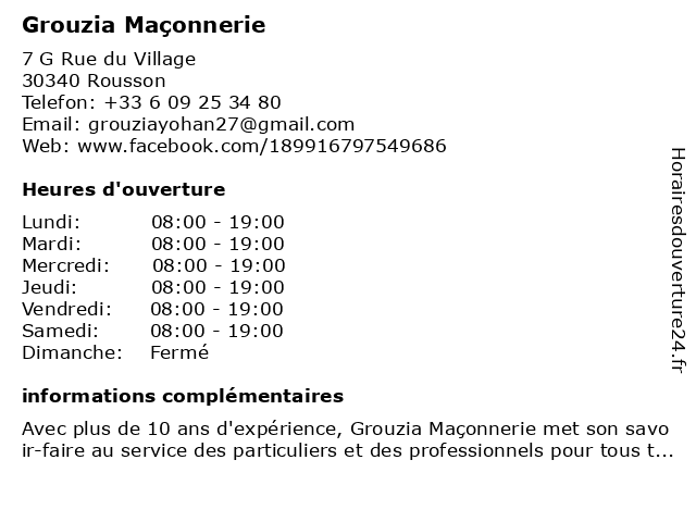 | Lundi | 08:00-19:00 |