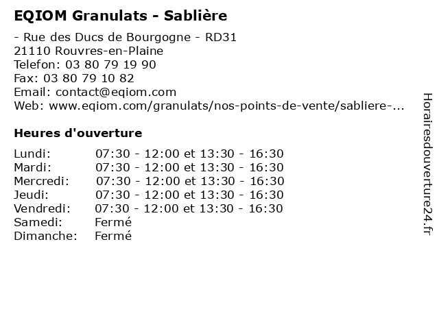 | Vendredi | 07:30-12:00 et 13:30-16:30 |