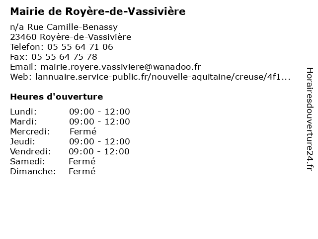 1 France Services (Distance: 0,08 km) - Rue Camille-Benassy, 23460 Royère-de-Vassivière administration, communes, france, service, services, services publics 2 Mairie de Vidaillat (Distance: 12,99 km) - Le Bourg, 23250 Vidaillat administration, de, mairie, publique, service, vidaillat 3 Mairie de Rempnat (Distance: 17,24 km) n/a Le Bourg, 87120 Rempnat administration, assoc, associations, aux, d'information, de, des, dédié, greffe, information, local, locale, mairie, mission, personnes, point, rempnat, services, services publics, âgées 4 Point d'information local dédié aux personnes âgées (Distance: 17,67 km) 7 rue du Pré, 87120 Eymoutiers administration, assoc, associations, aux, d'information, des, dédié, greffe, information, local, locale, mission, personnes, point, services, services publics, âgées 5 Point d'information local dédié aux personnes âgées (Distance: 17,71 km) n/a Place Tournois, 23400 Bourganeuf administration, assoc, associations, aux, d'information, des, dédié, greffe, information, local, locale, mission, personnes, point, services, services publics, âgées 6 Mairie de La Chapelle-Saint-Martial (Distance: 20,58 km) - Le Bourg, 23250 La Chapelle-Saint-Martial administration, chapelle, commune, de, formalité, information, la, mairie, martial, saint |