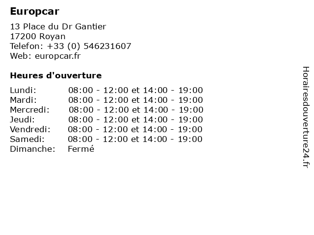 1 Europcar (Distance: 13,37 km) n/a Route de royan, 17570 La palmyre automobiles, europcar, jonzac, location de voitures, location de voitures de luxe, location de véhicules utilitaires, véhicules 6 |