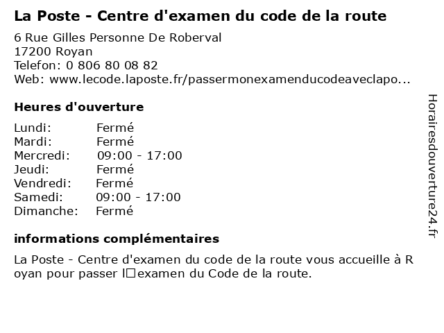Termes de recherche pour La Poste - Centre d'examen du code de la route:poste, la, du, de, route, centre, code, d'examen, centre d'évaluation scolaire, école technique |