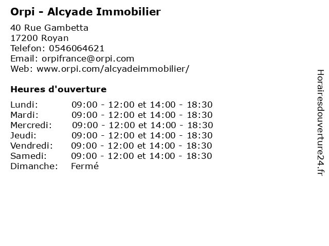 | Samedi | 09:00-12:00 et 14:00-18:30 |