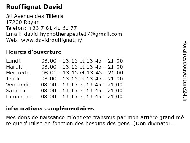 | Mardi | 08:00-13:15 et 13:45-21:00 |