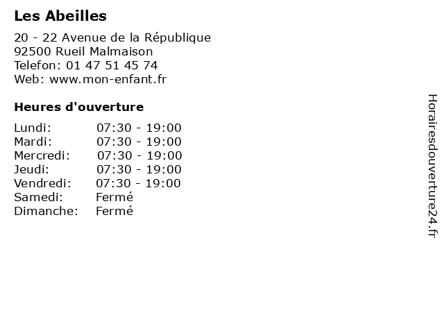 1 Crèche multi-accueil Liveli - Les Abeilles (Distance: 0,02 km) 20-22 Avenue de la République, 92500 Rueil-Malmaison abeilles, accueil, crèche, crèches, les, liveli, multi, services, services à la personne 2 TotalEnergies Access - RELAIS DES ABEILLES (Distance: 2,26 km) 182 RUE P.VAILLANT COUTURIER, 92000 NANTERRE abeilles, access, des, gas station, relais, station service, tankstelle, total, totalenergies 3 Abeilles Assurances Cosson Benoît Agent Général (Distance: 8,20 km) 2 Rue Pasteur, 92300 Levallois-Perret abeilles, agent, assurances, benoît, cosson, général 4 Les Deux Abeilles (Distance: 9,43 km) 189 Rue de l'Université, 75007 Paris abeilles, bar, bistro, bistrot, brasserie, café, deux, les, pub, restaurant, restauration, resto 5 Miel Abeilles Et Vie (Distance: 11,81 km) 10 Bis rue Marcellin Berthelot, 78330 Fontenay le Fleury abeilles, et, fontenay le fleury, miel, miellerie, vie 6 |