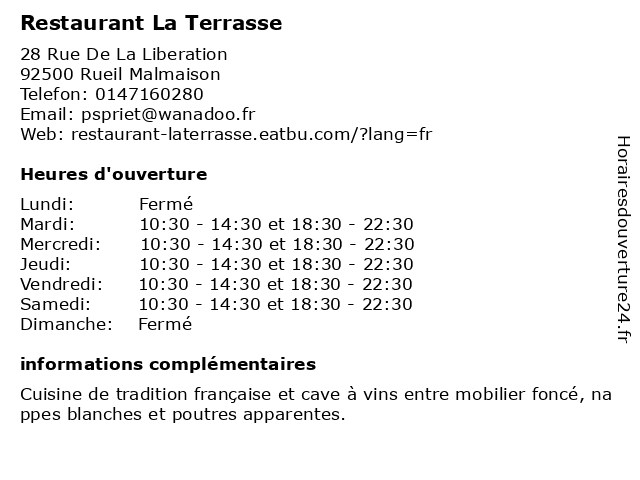 Termes de recherche pour Restaurant La Terrasse:restauration, restaurant, la, café, bar, bistrot, brasserie, pub, terrasse, resto, bistro |