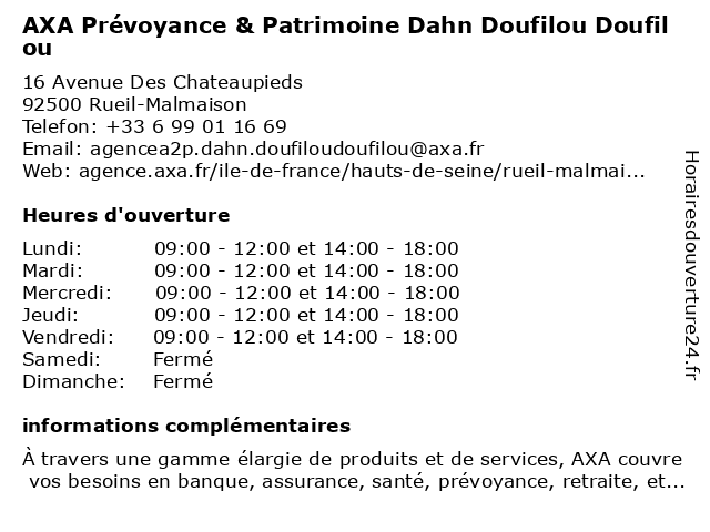 | Lundi | 09:00-12:00 et 14:00-18:00 |