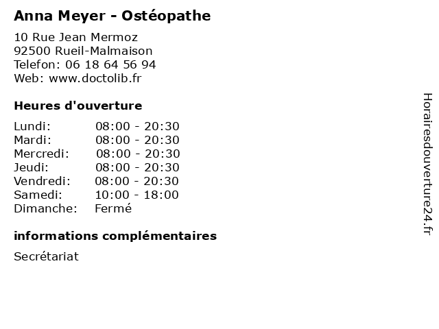 | Jeudi | 08:00-20:30 |