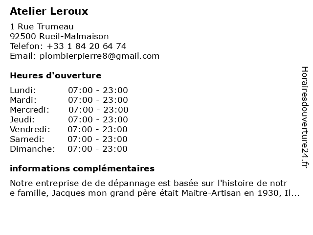 2 Atelier Leroux (Distance: 5,82 km) 31 Boulevard Jean Jaurès, 92100 Boulogne-Billancourt atelier, leroux 6 |