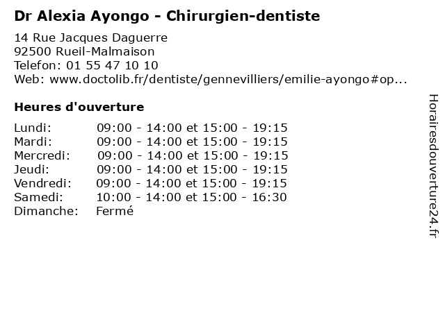 | Lundi | 09:00-14:00 et 15:00-19:15 |